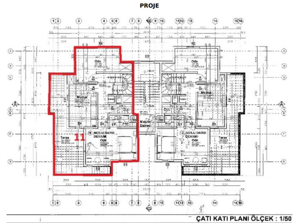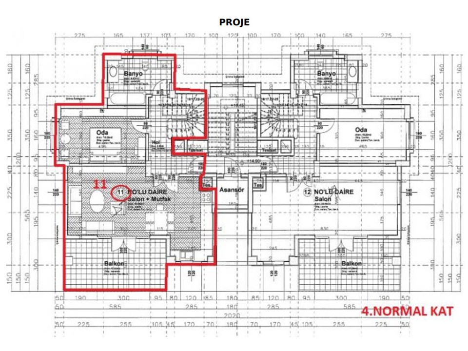Gayrimenkul 11 bağımsız bölüm numaralı dubleks meskendir. Binanın 4. normal katında ve çatı katında yer alan, bina girişine göre sağ tarafta; kuzey, kuzeydoğu ve güneybatı cephelidir. Gayrimenkulün 4.normal katı hol, salon+mutfak, banyo, oda ve balkon hacimlerinden, çatı katı ise 2 oda, hol, mutfak, 2 banyo ve teras hacimlerinden oluşmaktadır.