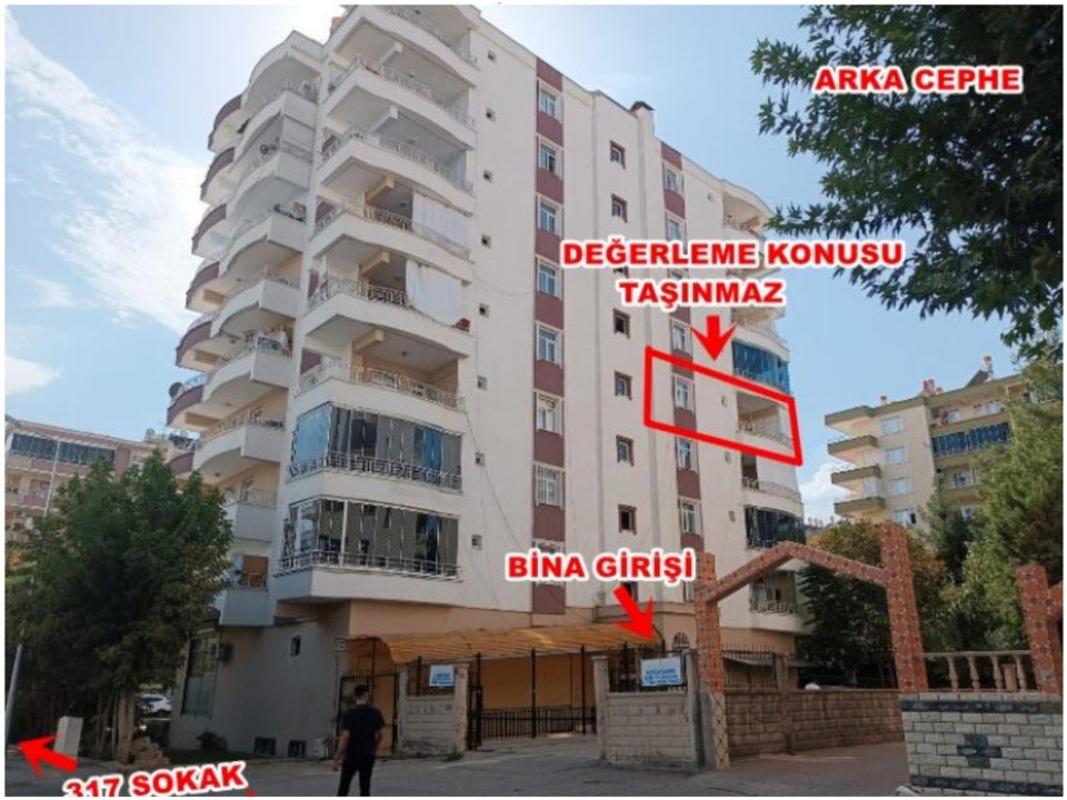 Gayrimenkul 4.normal katta yapı girişine göre sağ cephede konumlu, 317 Sokaktan bakınca arka cephede konumlu olup projesine göre antre, hol, salon, 3 adet oda, mutfak, 1 banyo, duş, wc ve 2 balkon hacimlerinden oluşmakta olup brüt 187 m2 kullanım alanına sahiptir.