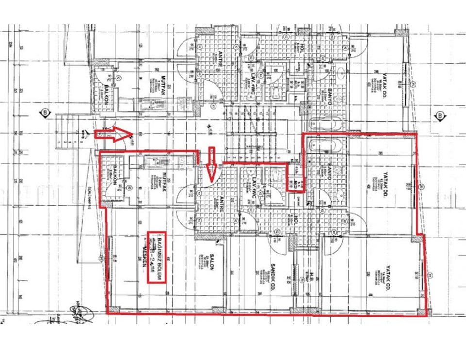 Gayrimenkul zemin katta bina girişine göre sağ cephede konumludur. Mimari projesine göre; salon, 3 oda, mutfak, antre, hol, balkon, banyo ve wc hacimlerinden oluşmaktadır.