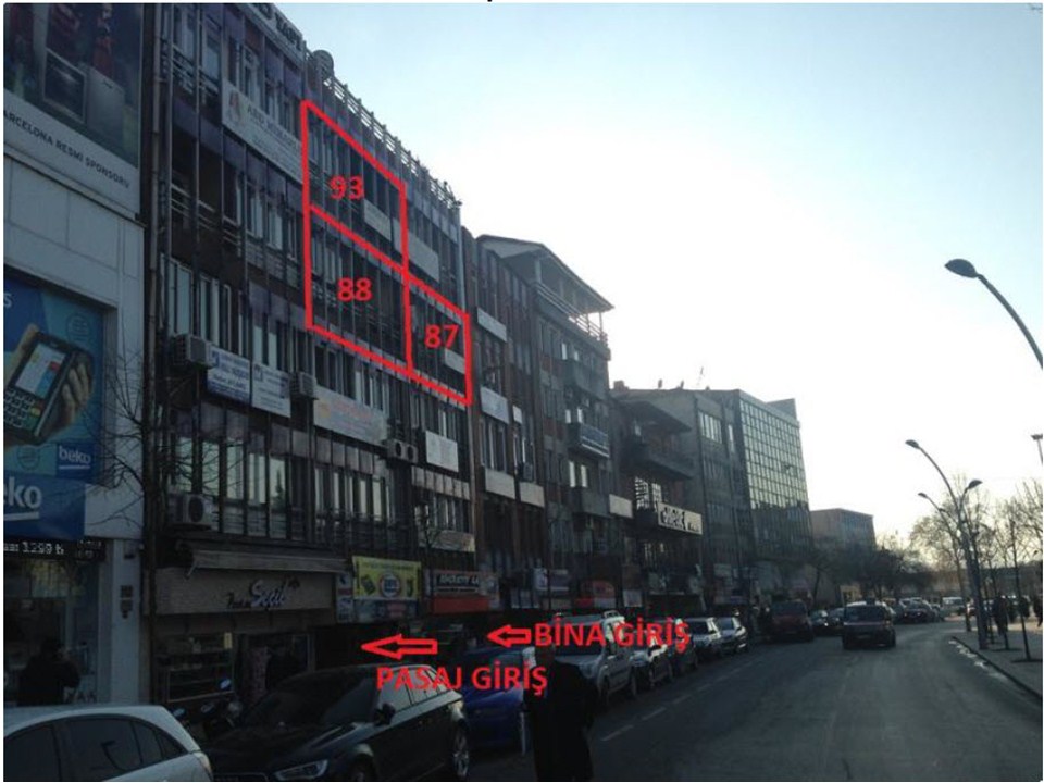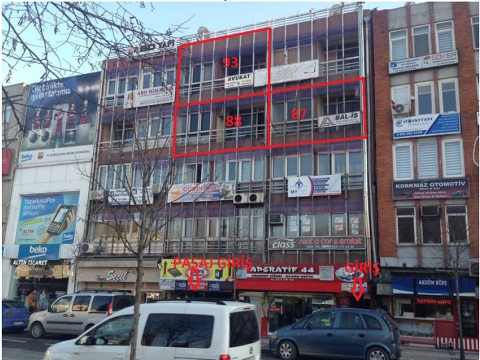 Gayrimenkul 93 (402) nolu büro 4.normal katta yer almaktadır.Tek cephe olarak kuzeycephede yer almaktadır. Mimari projesine göre salon, oda, hol, mutfak,lavabo,wc ve duş bölümlerinden oluşmaktadır.